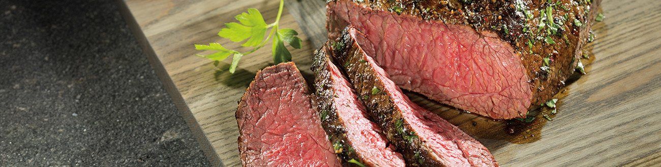 Tri-Tip roast, also known as “Triangle Roast” and “Santa Maria roast” has long been a favorite in California and along the West Coast. This distinctive cut is gaining attention across the nation for its hearty roasted flavor and juicy, tender texture. While generally well-marbled, Tri-Tip roast is still considered a lean cut and can become dry if not cooked to the proper temperature. This roast is best served medium-rare to medium. Incredibly versatile, a Tri-Tip roast is perfect for offering diverse cuts like rare or medium-rare slices from the wide, thicker end and medium slices from the narrow, thinner end. Additionally, the rich flavor and melt-in-your-mouth texture of a Tri-Tip roast is terrific on its own or used in sandwiches and fajitas, with noodles or pasta, and on top of salads.